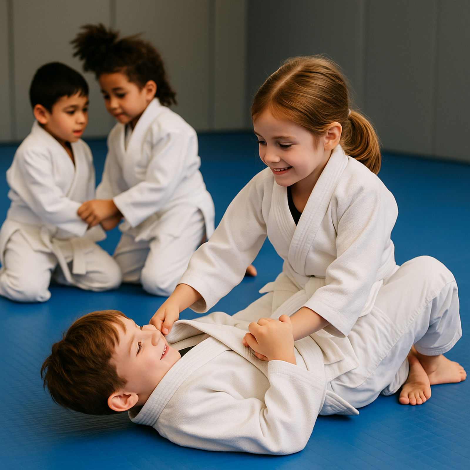 Submissions: They learn holds and locks that help them gently get an opponent to "tap out," focusing on technique over force.