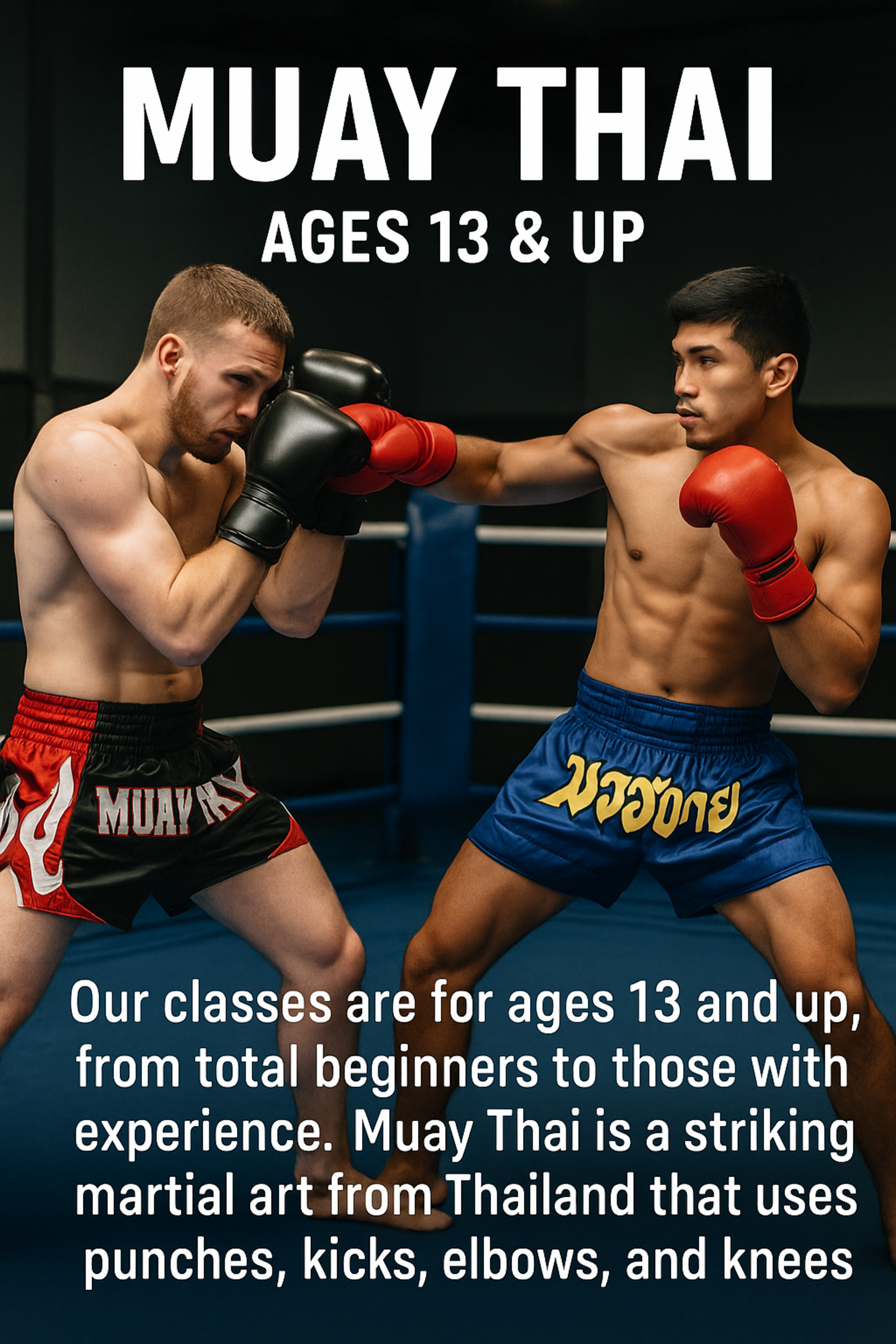 Our Muay Thai program for ages 13 and up is designed to take you from absolute beginner to advanced levels. Whether you're a teenager or an adult, we provide step-by-step training that helps you build skills, fitness, and confidence.